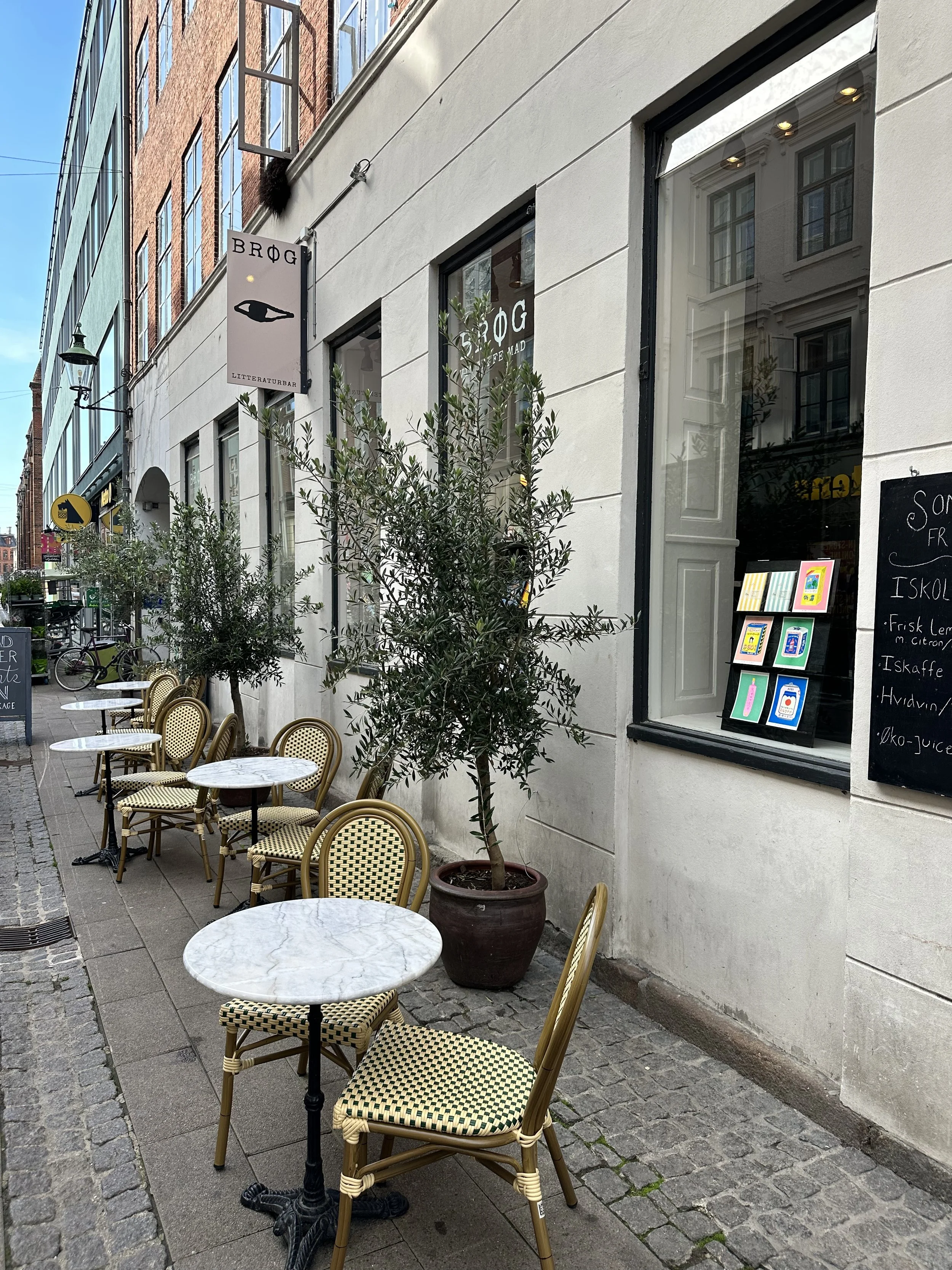 Jeg har siden BRØG åbnede altid fået kyndig vejledning af Anna, der står i boghandlen og et dejligt måltid mad fra Claes, der står i køkkenet. Tilbage i starten af juli måned tog jeg forbi BRØG og spurgte, om de mon kunne bruge en hjælpende hånd i deres skønne bar. Det kunne de og jeg har haft mine første arbejdsdage hos dem og det har været fantastisk. Selvom jeg husker tilbage på min tid som tjener for mere end ti år siden, som noget jeg var ret god til, så var det helt sikkert med rystende hånd, at de første kopper kaffer blev brygget og serveret i cafeen af mig. Men efter en hel arbejdsdag uden at have kigget på min telefon og kun haft hyggelige samtaler med litteraturbarens gæster, var jeg solgt og lidt høj. Jeg kunne mærke, at her er noget, jeg bliver god til og glad for. Og på den måde er en drøm gået i opfyldelse, hvem ved om 25 år har jeg måske min egen litteraturbar.