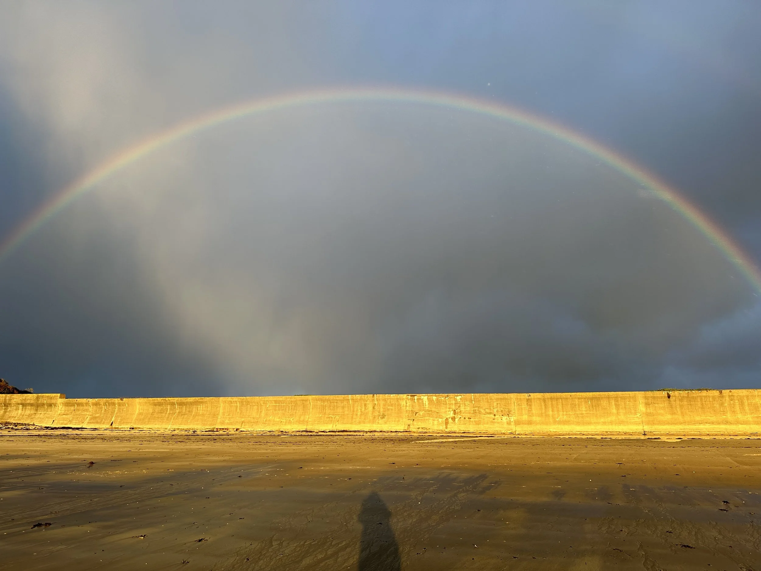 Hvordan ville en regnbue mærkes, hvis man kunne holde om den? Sandet fra stranden i dine hænder, oplever du det som blødt og lækkert eller har det en knasende kvalitet over sig? Og mon du ser denne himmel fyldt med de samme grå og blå nuamcer som jeg?