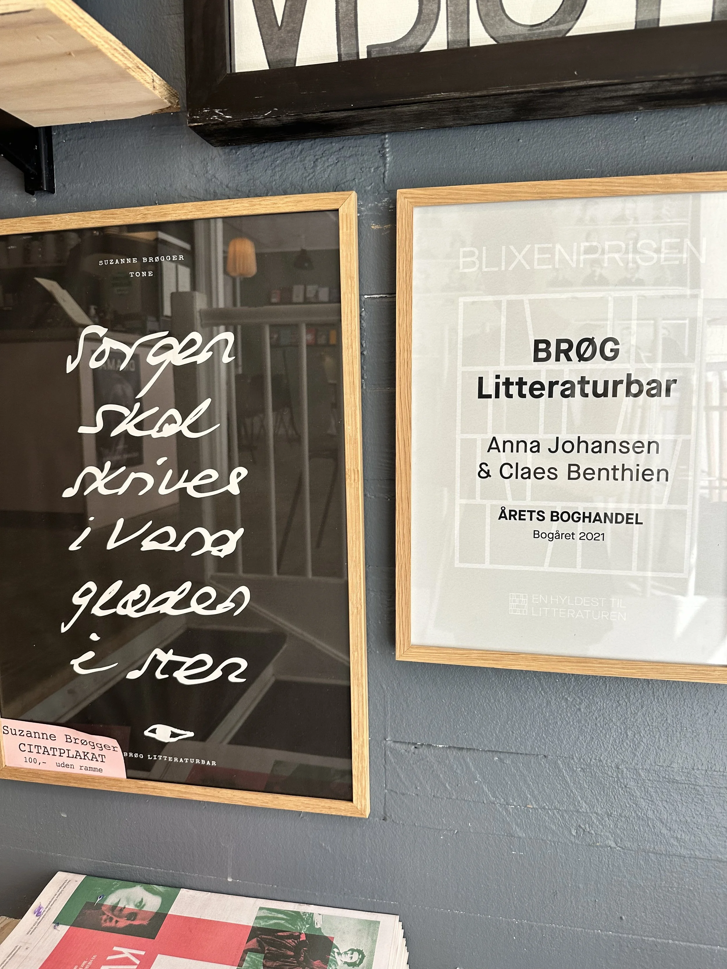 Inde på BRØG Litteraturbar hænger der en citatplakat fra Suzanne Brøgger. Den lyder ”Sorgen skal skrives i vand, glæden i sten”. Citatet er fra Suzanne Brøggers bog Tone, som jeg ikke kan prale af at have læst. I det hele taget skal Brøggers univers på boglisten, for det har ikke været i mine hænder siden gymnasietiden. Citatet rammer mig. Jeg synes det er lidt vemodigt. Umiddelbart kan det jo læses som at glæden skal forankres i sten, som er meget stærkere end vand og dermed sejrer glæden over sorgen. Men når man tænker på vands egenskaber kan der sås tvivl om sejren. Hvis sorgen skrives i vand og kroppen består af 2/3 vand, så kan kroppen jo rumme enorme mængder sorg. Og det er måske okay. Jeg håber du har lyst til at læse med. .